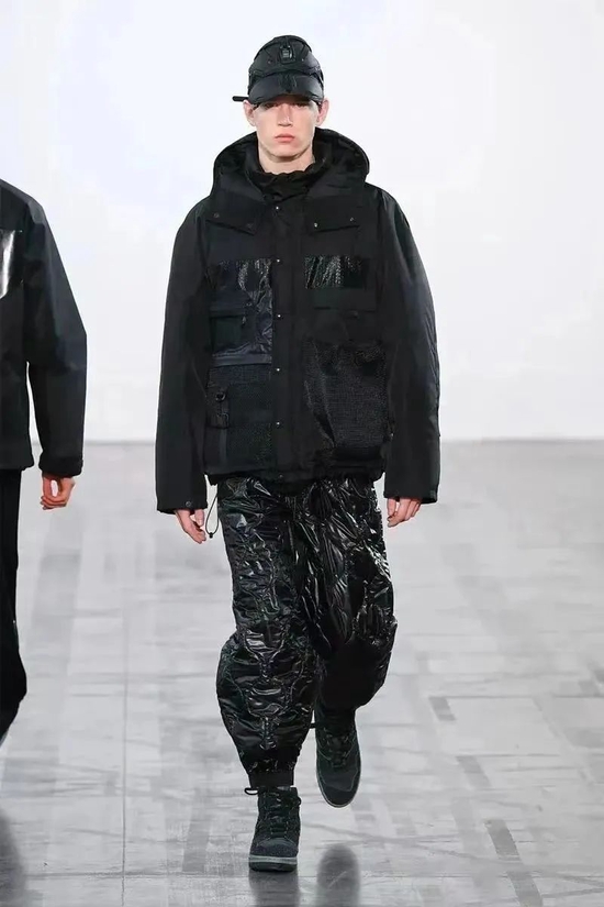 就如前文提到的,本次时装周 Oakley 亦迎来了全新的联名鞋款。延续 Junya Watanabe 服饰单一配色的设计理念,但三种材质的堆砌,也使这双鞋别具质感。