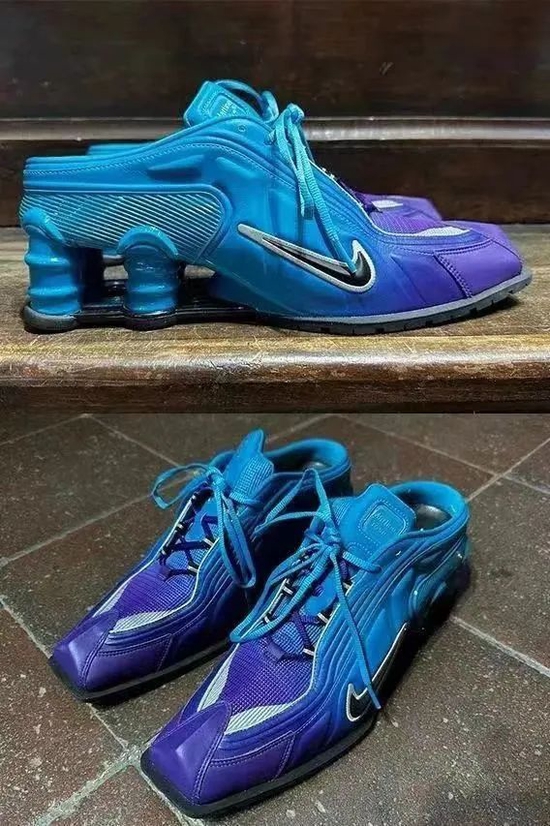 在去年掀起一阵风浪的 Martine Rose x Nike Shox MR4 ,在本次时装周中再度迎来全新配色。从鞋头紫渐变至鞋身的蓝色,相较于去年的两个配色,此次颜色更为跳脱。在整体鞋型上并未作出过多改动,不过该配色或许能成为不少女孩的心头好。