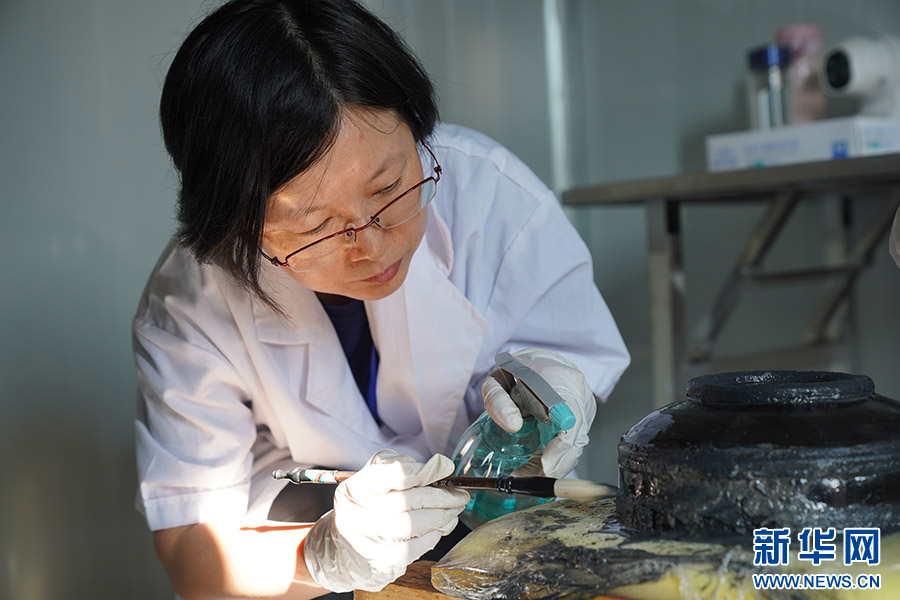 考古队工作人员清洗器物。新华网发(重庆市文物考古研究院供图)