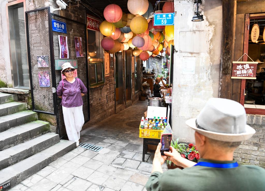 保留山城传统风貌的山城巷吸引了往来游客。新华社记者 王全超 摄